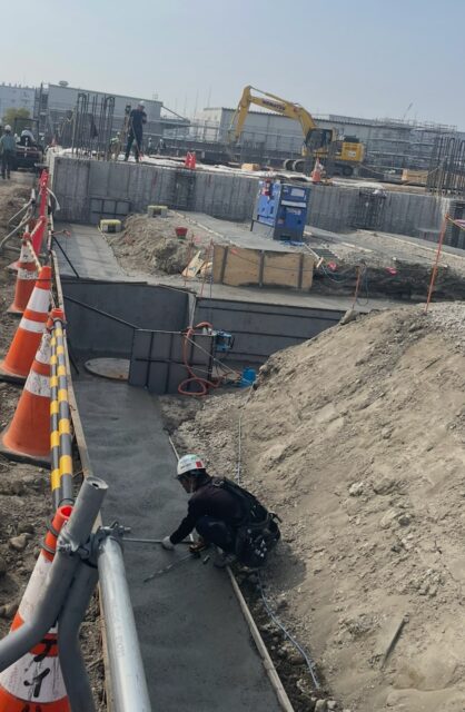 杭頭は建物を支える重要な基盤であり、設計図通りの位置・高さになっているかどうかを実測でしっかり確認します。ここでの誤差は建物全体の精度に直結するため、ミリ単位の正確さが求められます。