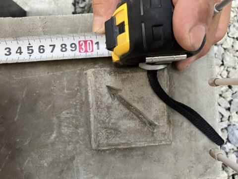測量結果に基づいて、新たに境界プレートを設置。