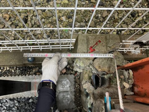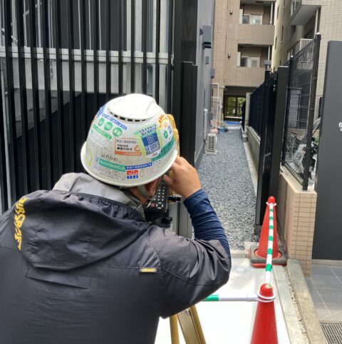 まずは正確な位置を把握するために測量を実施。