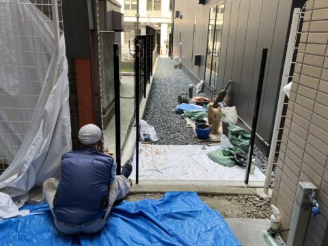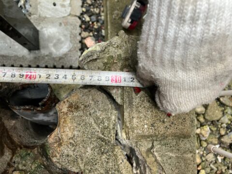 現場では境界の周りに設置されていた壁が崩れてしまい、肝心の境界位置が分からない状態になっていました。