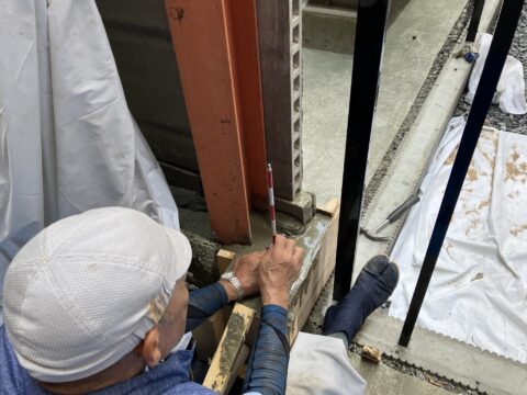 広い倉庫内での精密な位置出し作業。 図面を確認しながら、間仕切り位置を正確にマーキングしていきます。 …